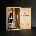 Caja de madera de pino grabada: 1 botella Coraje + Copa