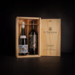 Caja de madera de pino grabada, con 2 botellas: 1 botella Coraje + 1 botella Pasión